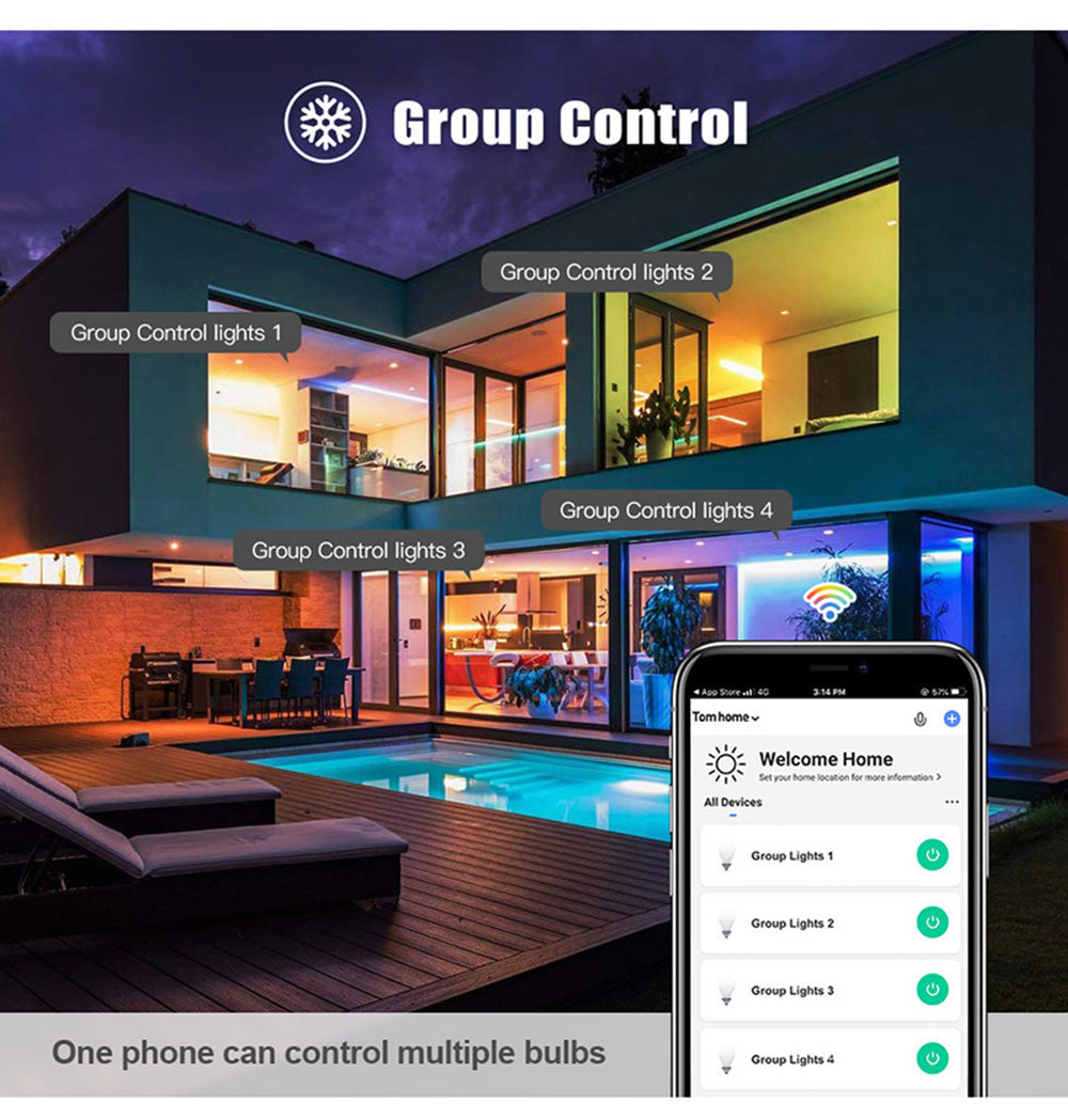 4. Light color: RGB+ Warm white + White (2700K-6500K)